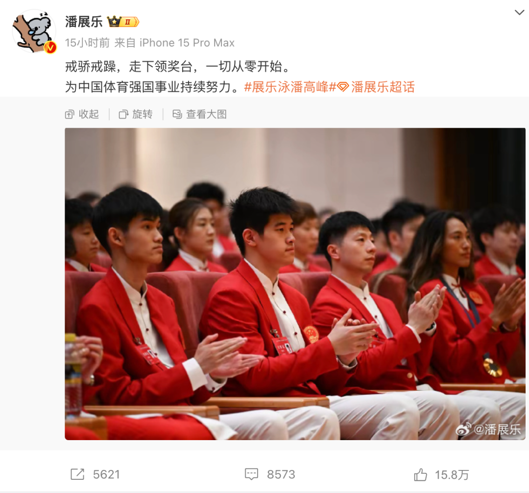策略联盟按月配资 发完微博立马下线?潘展乐:一切从零开始